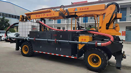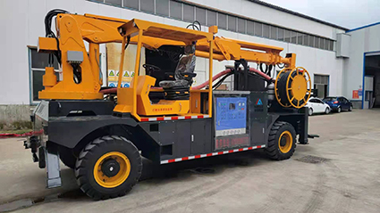 混凝土濕噴臺車包括液壓噴射機械手、噴射機(泵)、外加劑及其添加設備和電纜卷盤、空壓機等,都安裝在同一機械底盤上,是一臺集混凝土泵送、外加劑添加、混凝土噴射等多項作業(yè)于一體的組合設備?;炷翝駠娕_車的各組成系統(tǒng)在整體設計上統(tǒng)一考慮了其布局的合理性,做到了易于維修,并具有易于清洗的特點。