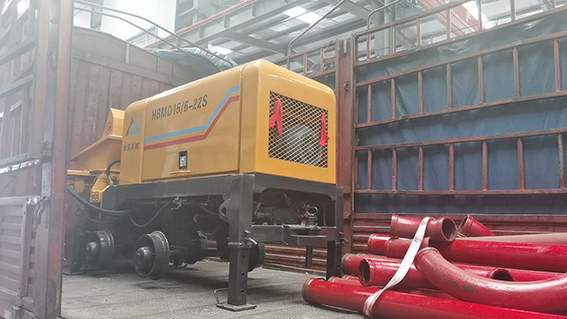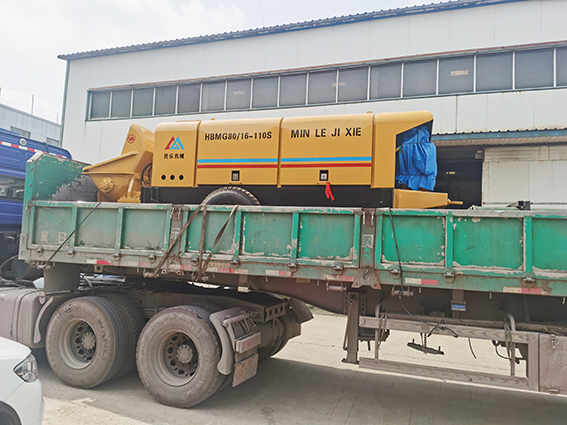 混凝土輸送泵應(yīng)安放在堅實平整的地面,放下支腿,將機身安放平穩(wěn)。